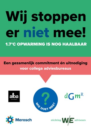 Samen met een groep adviesbureaus, zoals DGMR, Alba Concepts en Merosch, committeert Stichting W/E adviseurs zich aan een stevige CO2-aanpak voor nieuwbouwopdrachten. Hiermee bouwen we voort op het CO2-commitment van grote beleggers en woningcorporaties, waarvoor wij data aanleverden. Lees het gezamenlijke commitment hier.