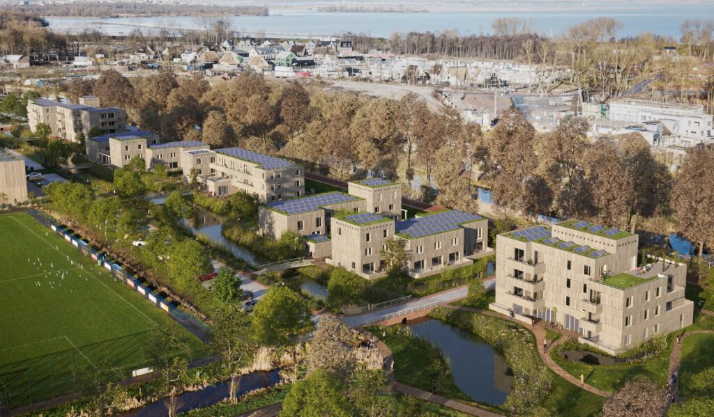 We bespreken een van de actuele projecten waarbij Ruud betrokken is: ‘In verband met de aanbesteding van een nieuwe woonwijk in Muiden heeft de gemeente Gooise Meren in 2021 contact met ons opgenomen. Ze hebben in deze stad grond in bezit waarop 90 betaalbare woningen gerealiseerd moeten worden. Hiervoor heeft de gemeente een programma van eisen opgesteld, zowel voor de woongebouwen als het gebied. Kernwoorden: CO2-neutraal, klimaatbestendig en circulair. Wij hebben deze kernwoorden in overleg met de gemeente geconcretiseerd en vertaald naar meetbare prestaties. Daarbij hebben we GPR Gebouw ingezet en de markt uitgedaagd om de verschillende duurzaamheidsaspecten op een zo hoog mogelijk niveau uit te werken. Alle deelnemende partijen zijn daar goed in geslaagd. Op basis van een integrale afweging van de verschillende aspecten hebben we samen met de gemeente de beste aanbieding geselecteerd. De tender is gewonnen door Slokker Vastgoed. Het worden houten woningen verdeeld over vijf losse woongebouwen. Ze liggen aan de Muidertrekvaart in een zorgvuldig ontworpen landschap.’